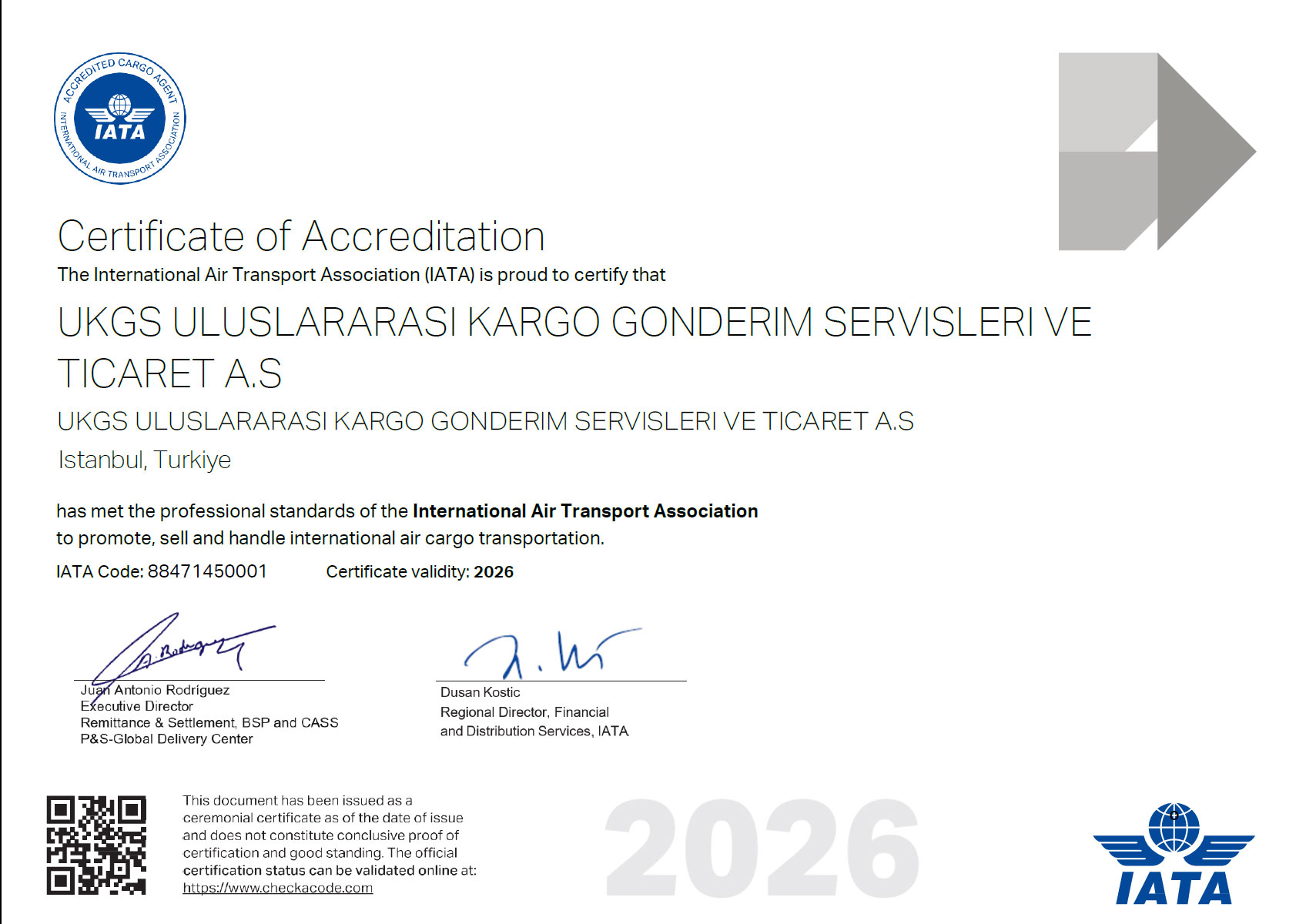 INTERNATIONAL AIR TRANSPORT ASSOCIATION - IATA SERTİFİKA